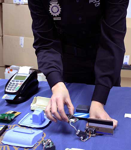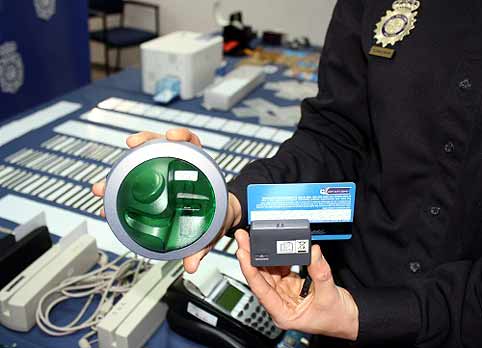 La Policía acaba de arrestar a una banda de clonadores de tarjetas de crédito que instalaba los dispositivos de skimming de la imagen en los cajeros automáticos para copiar los datos de las bandas magnéticas que después volcaban en otros soportes vírgenes. Después, empleaban las tarjetas fraudulentas para sacar pequeñas cantidades de efectivo hasta que las víctimas detectaban el fraude; también remitían las numeraciones a Méjico donde eran empleadas para adquirir productos en establecimientos comerciales que vendían en el mercado negro.