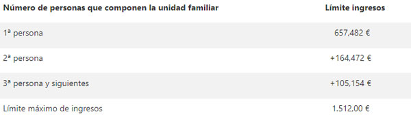 - Que la suma de los ingresos mensuales de la unidad familiar no superen los siguientes límites: