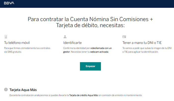 - Tener a mano tu teléfono móvil para firmar el contrato con BBVA por vía SMS totalmente gratis.