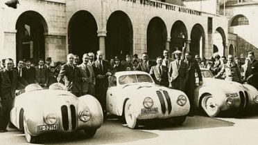 BMW participó en la Mille Miglia de 1940 con carrocerías tipo Roadster y coupé de Carrozzeria Touring de Milán. Las delgadas chapas de aluminio de estas carrocerías superligeras estuvieron montadas directamente sobre la fina estructura tubular de acero. El coupé en orden de marcha apenas pesó 780 kilogramos y tenía una velocidad punta de 220 km/h. El motor de este legendario coche deportivo tenía válvulas en culata en forma de V, una solución que empleaba BMW por primera vez.