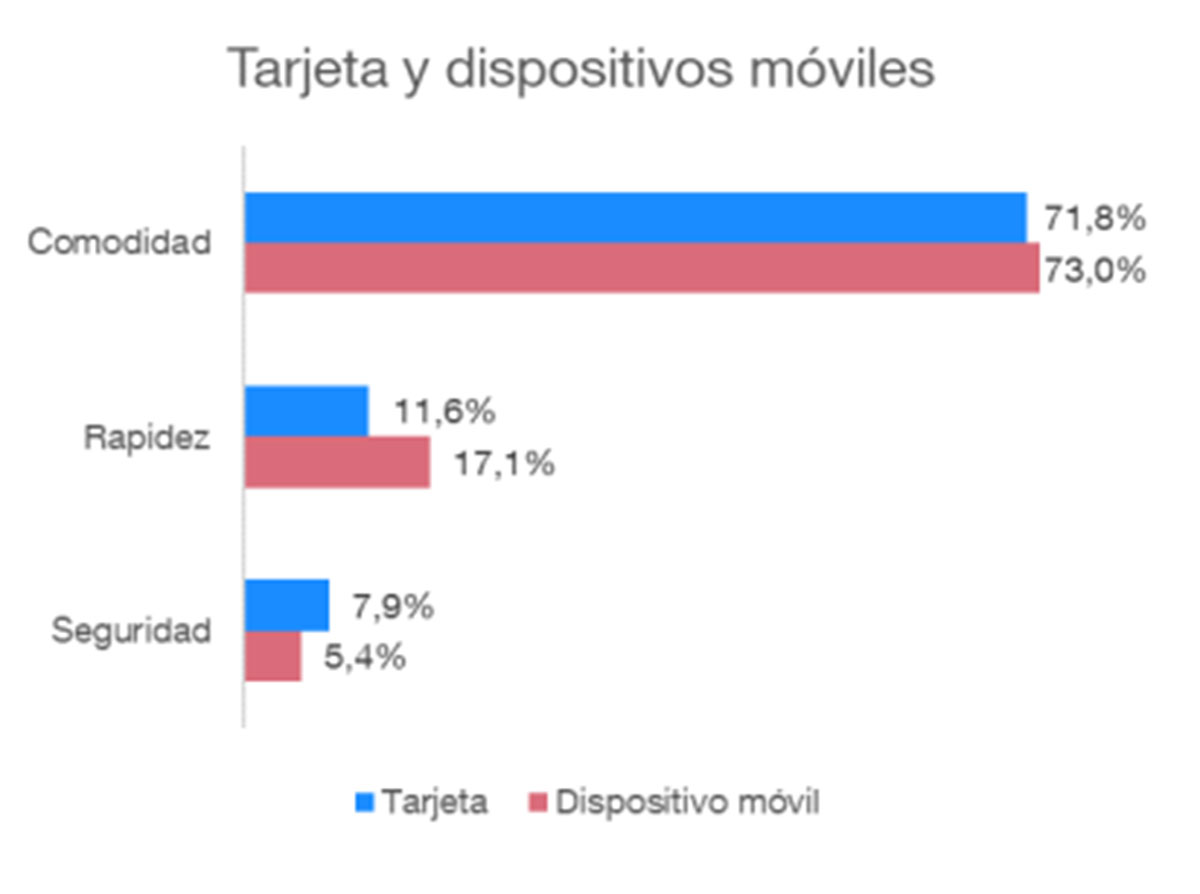 Comodidad, costumbre y control de gastos son las tres principales características del dinero en efectivo que motivan a los ciudadanos a seguir usando este dinero en metálico. Mientras que la rapidez y la comodidad son las razones de mayor peso para usar las tarjetas y los móviles como método de pago. Los móviles ganan peso en cuanto a la comodidad y rapidez, pero las tarjetas lo superan en seguridad a la hora de pagar.
