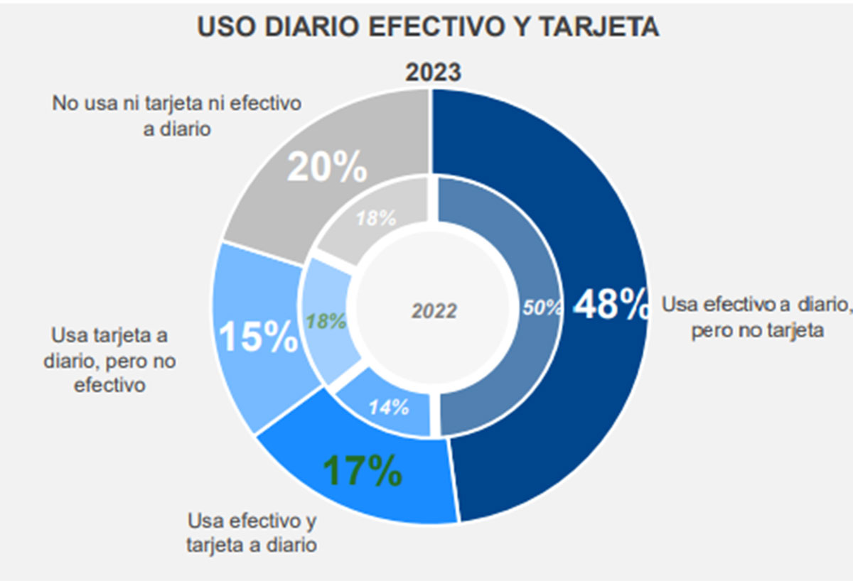 - El 17 % usa efectivo y tarjeta a diario