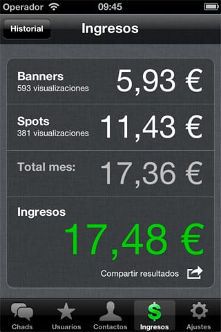 Su enfoque revolucionario, que retribuye al usuario por usar la aplicación, ha convertido el servicio de mensajería instantánea en una opción habitual para aquellos propietarios de smartphones interesados, no sólo en chatear gratis, sino en disfrutar de ventajas complementarias mientras lo hacen. Los ingresos que han obtenido hasta el momento los usuarios por la utilización de la app ascienden a unos 65.000 euros y la media de altas en el servicio se sitúa en los mil registros diarios.