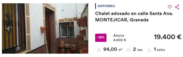 En Montejícar (Granada) se vende esta casa de pueblo por 19.400 euros. La vivienda cuenta con 94 m² de superficie total construida y 75 m² útiles. El inmueble tiene dos plantas y cuenta con un salón-comedor, cocina, despensa, lavadero y dos pequeñas estancias en la planta baja y dos dormitorios en la superior.