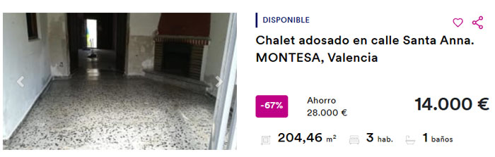 En Montesa (Valencia) se vende este inmueble por 14.000 euros. Se trata de una casa adosada con una superficie útil de 170,39 metros cuadrados, distribuida en salón, tres dormitorios, cocina y baño.