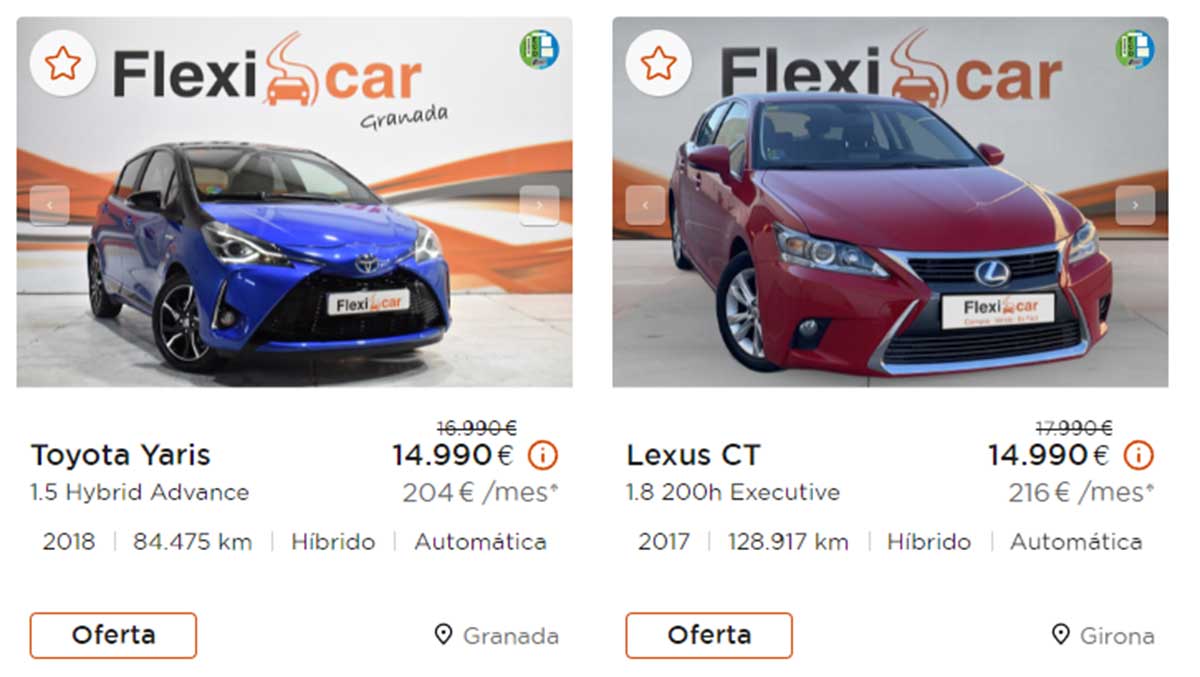 Puedes ver toda la oferta de coches híbridos de segunda mano en venta de Flexicar desde la página de Flexicar.