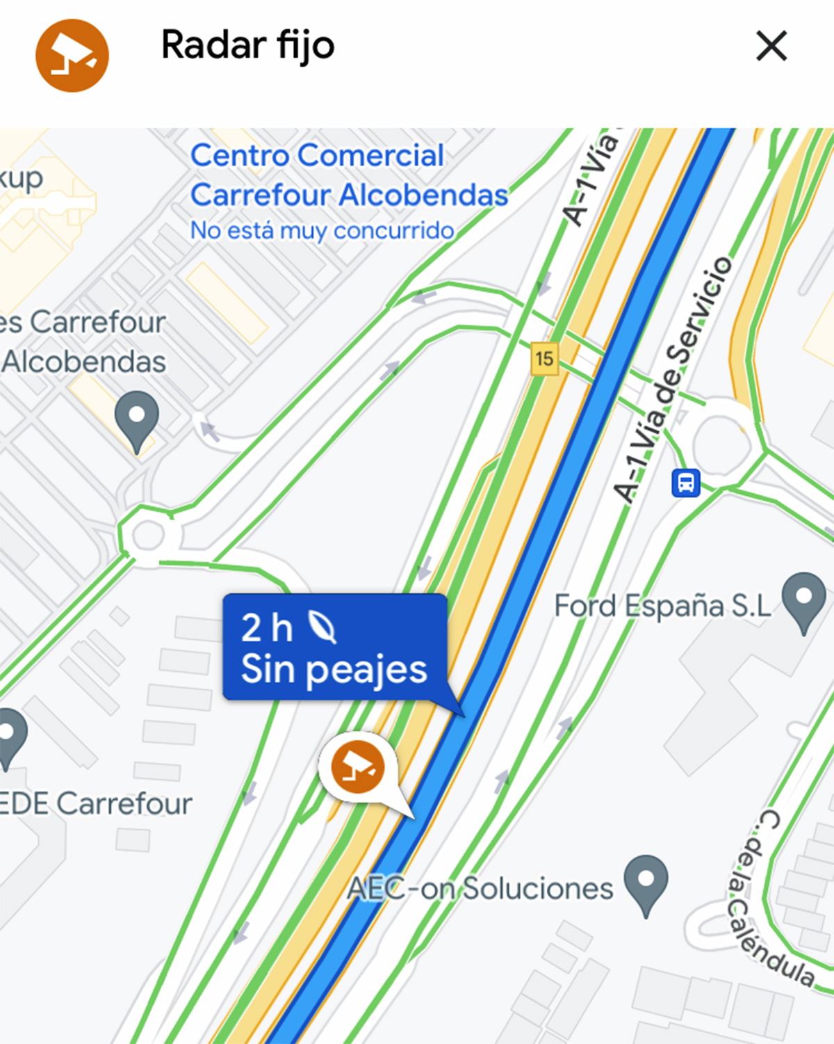 - De este modo, cuando vuelvas a seleccionar una ruta en el navegador, te aparecerán los radares con el símbolo de una cámara.