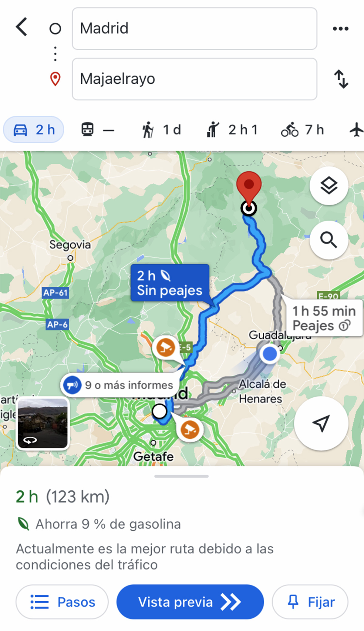 Por ejemplo, si estás planeando una ruta para esta Semana Santa o cualquier fin de semana para ir a comer a los pueblos negros de Guadalajara, tendrás que indicar el inicio y el destino de la ruta en Google Maps. Si no aparece ningún símbolo de una cámara en la ruta, realiza los siguientes pasos para activar el aviso de radares: