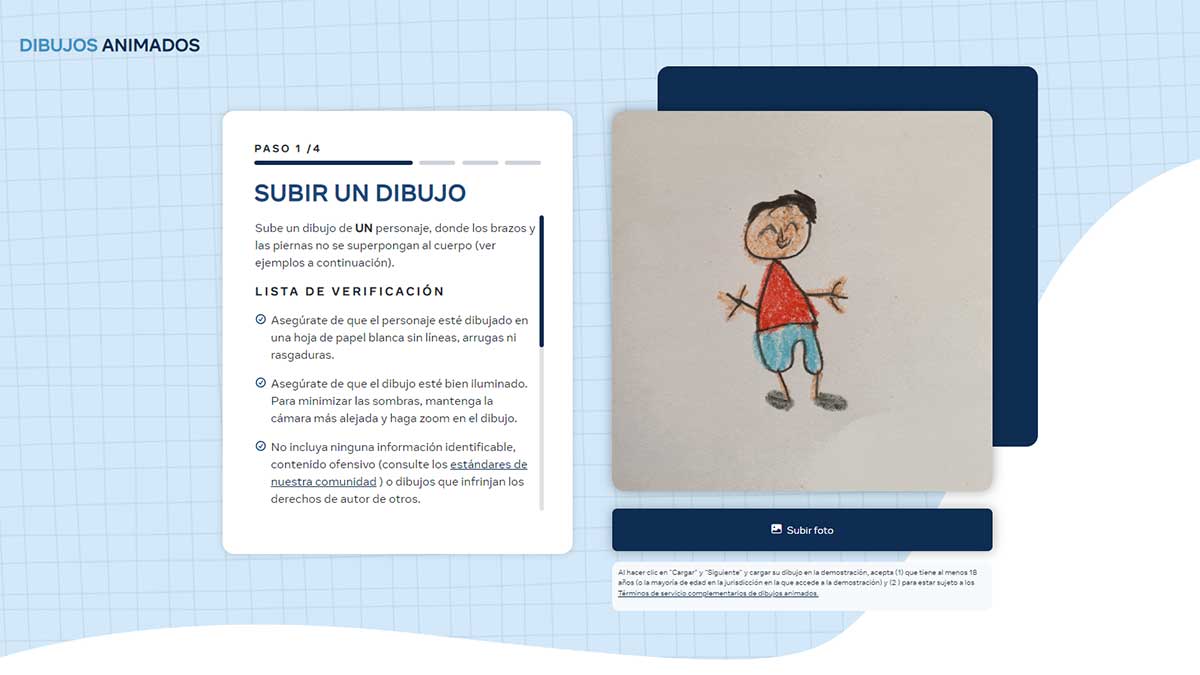 Lo primero, tal y como detallan en la web, es subir un dibujo de un personaje.