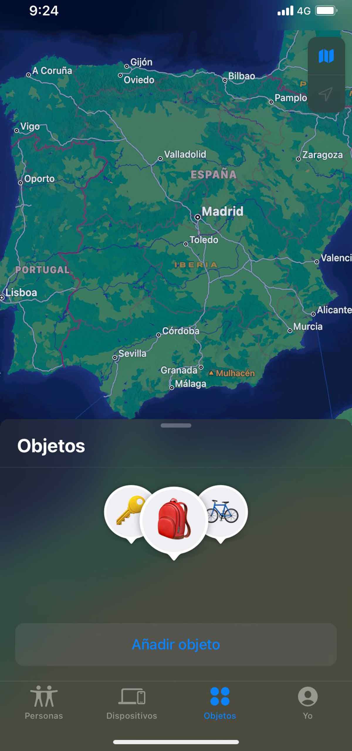 Cuando estés dentro de la aplicación tienes que pulsar en el apartado ‘Objetos’ en la parte inferior de la pantalla. A continuación, pulsa en ‘Añadir objeto’ para enlazar por Bluetooth cualquier otro dispositivo de la marca Apple que sea compatible, como un AirTag.