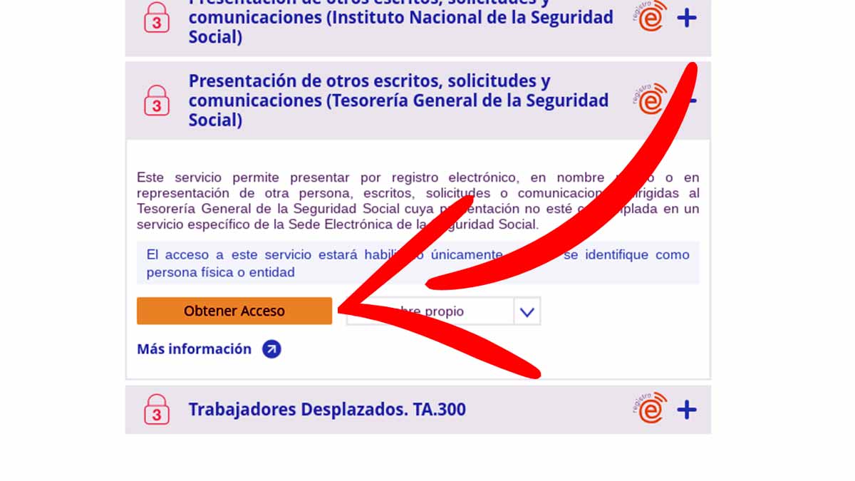 Si pulsas sobre esta opción, se despliega una pestaña en la que hay un botón amarillo que dice ‘Obtener acceso’. Tienes que seleccionar esta opción, identificarte por la vía que prefieras y completar el formulario que aparece en pantalla.