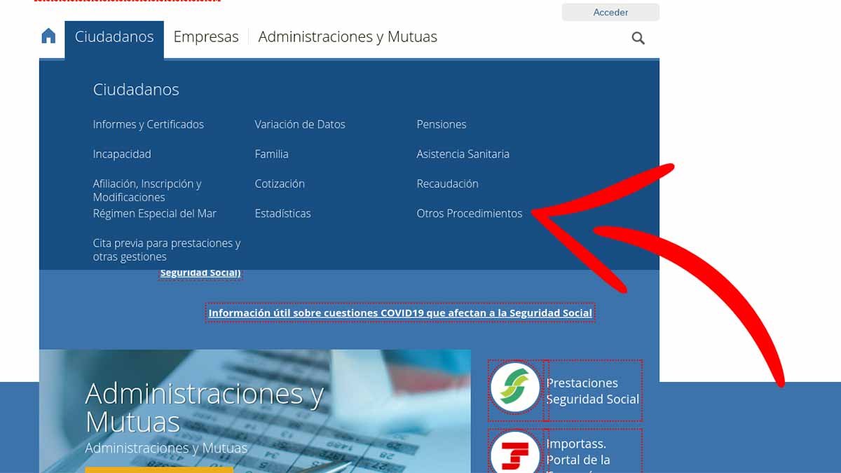 A continuación se despliega un menú con varias pestañas en el que tienes que seleccionar ‘Otros procedimientos’.