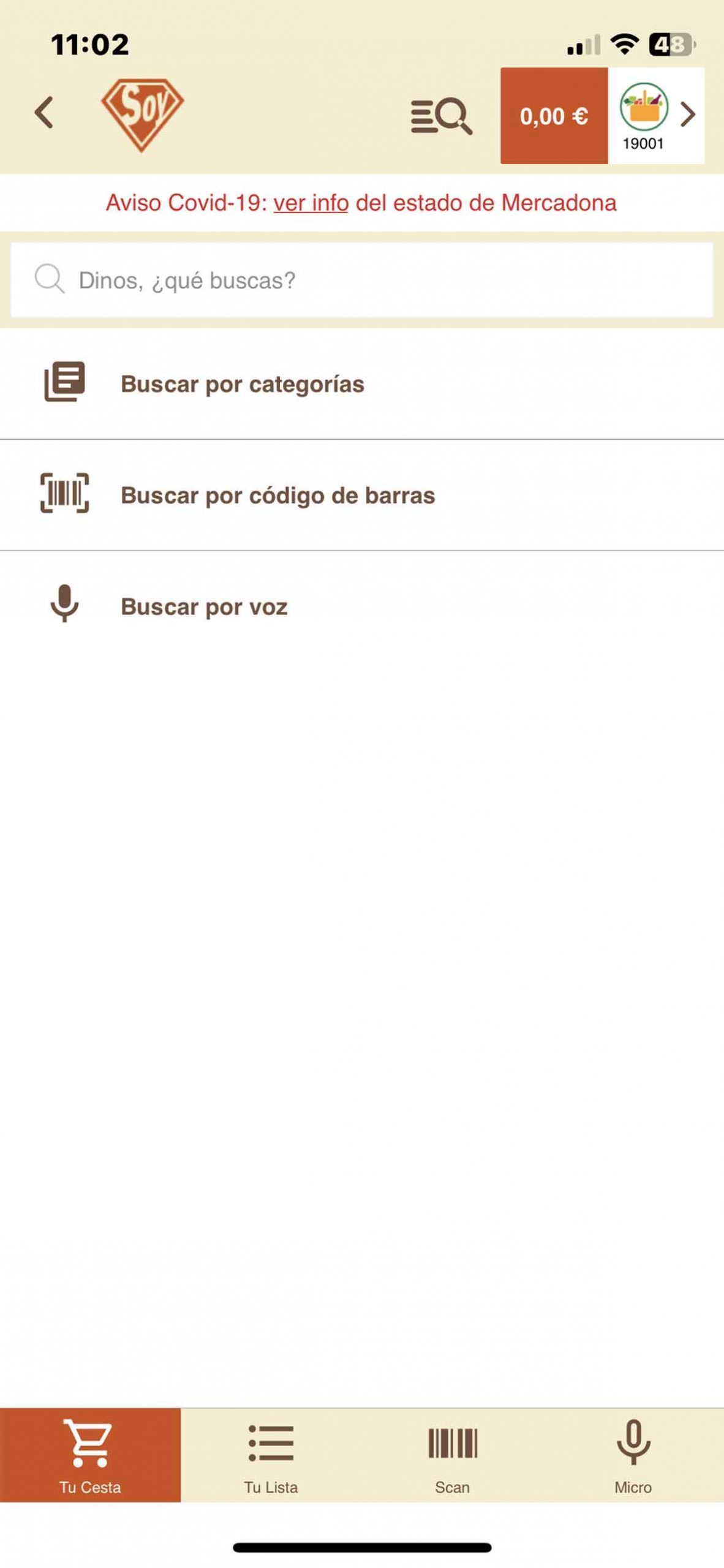 Si estás en el supermercado físicamente y quieres comparar si en algún otro establecimiento es más barato, puedes escanear directamente el código de barras. Mientras que, si estás en casa, puedes seleccionar la primera pestaña y buscar productos por categorías.
