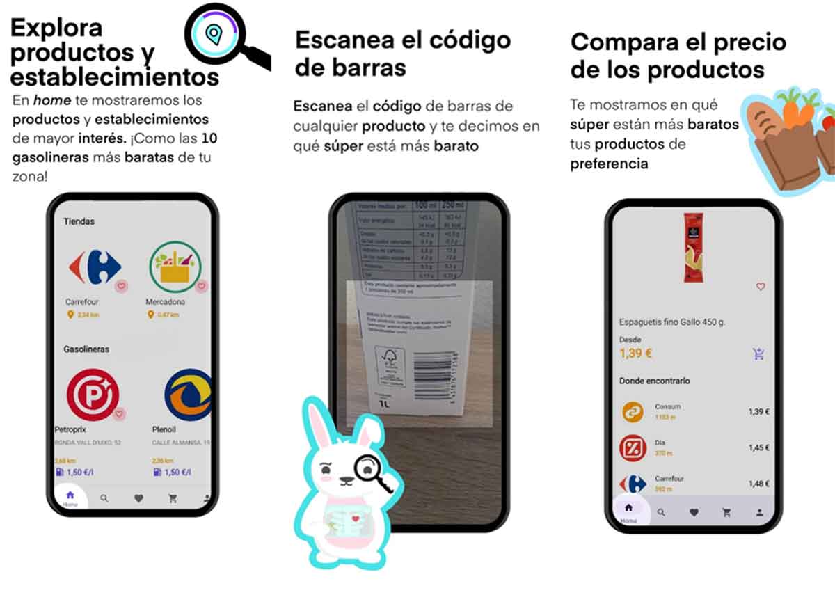 En el caso de hacer la búsqueda por el código de barras, la aplicación informe de en qué supermercado es posible encontrar el precio más barato para comprar un determinado artículo. En el caso del ejemplo que aparece en la imagen, el precio de un paquete de espaguetis de la marca de gallo cuesta 1,39 euros en Consum. Mientras que el precio aumenta en 9 céntimos en el caso de comprarlo en Carrefour.