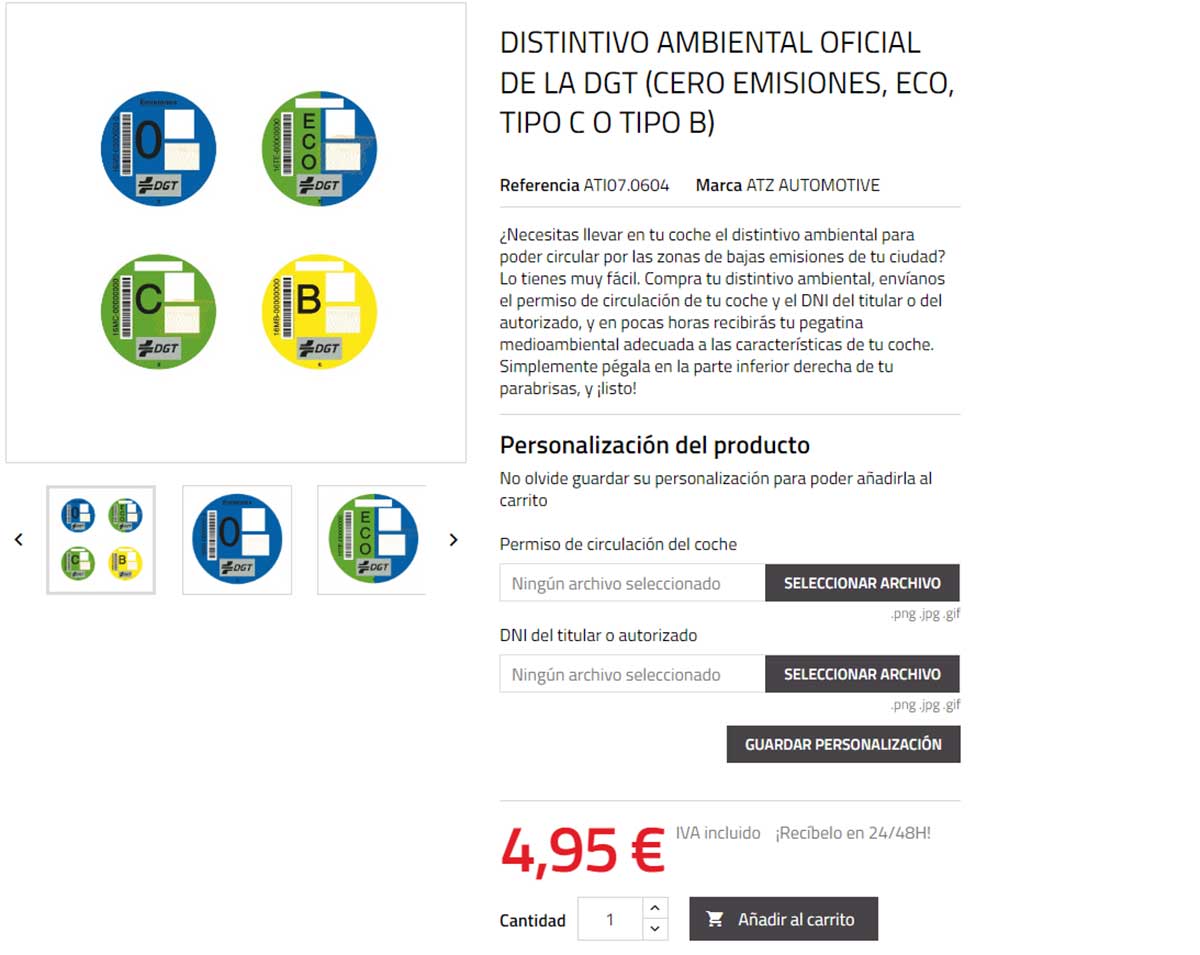Como has podido observar, durante el proceso la web no pide que selecciones una pegatina, puesto que es la empresa la que te envía el distintivo específico que se corresponde con tu vehículo una vez tengan la documentación necesaria.