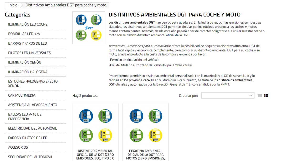 Para comprar la pegatina de la DGT para tu coche sin salir de casa y por menos de 5 euros, hay que acceder a la web específica de la compañía AutoAcc, una empresa especializada en accesorios de automoción que cuenta con la homologación para vender las pegatinas oficiales de la DGT.