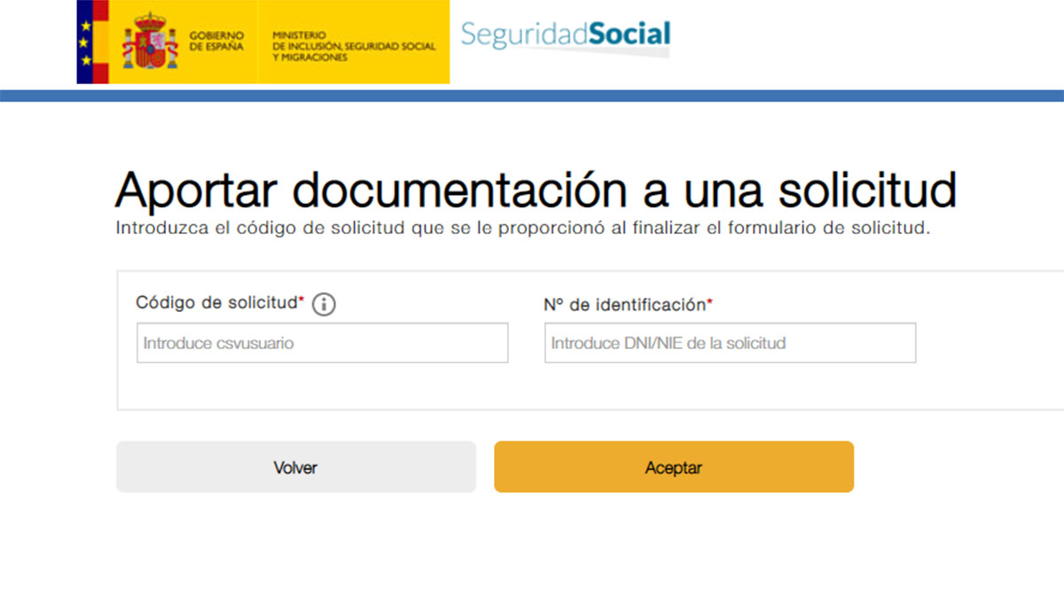 Para poder acceder de forma personalizada al estado de la solicitud necesitas el número de tu DNI y el código que se genera cuando finalizas la solicitud de la Renta Mínima Vital. Aunque en la imagen ponga ‘Aportar documentación a una solicitud’, al seguir estos pasos, también aparece el estado en el que se encuentran todas las peticiones presentadas.