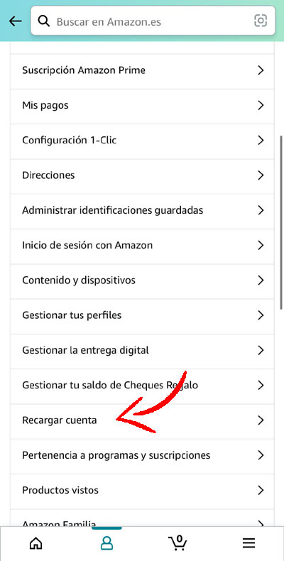 Dentro de ese apartado baja hasta encontrar la pestaña ‘Recargar cuenta’ y pulsa en ella.