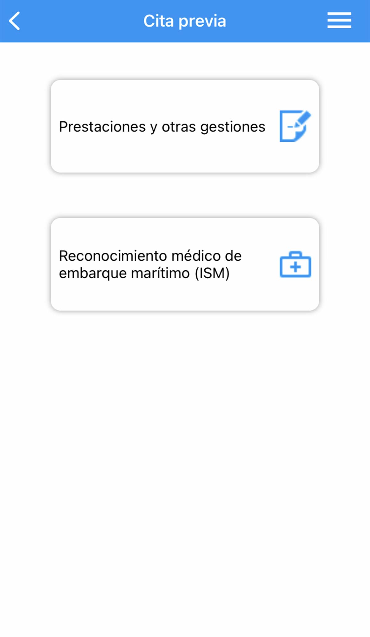 El primer paso para solicitar cita previa a través de la app es descargar la aplicación. Una vez hecho, al entrar, aparece un menú con las diferentes gestiones que puedes realizar.