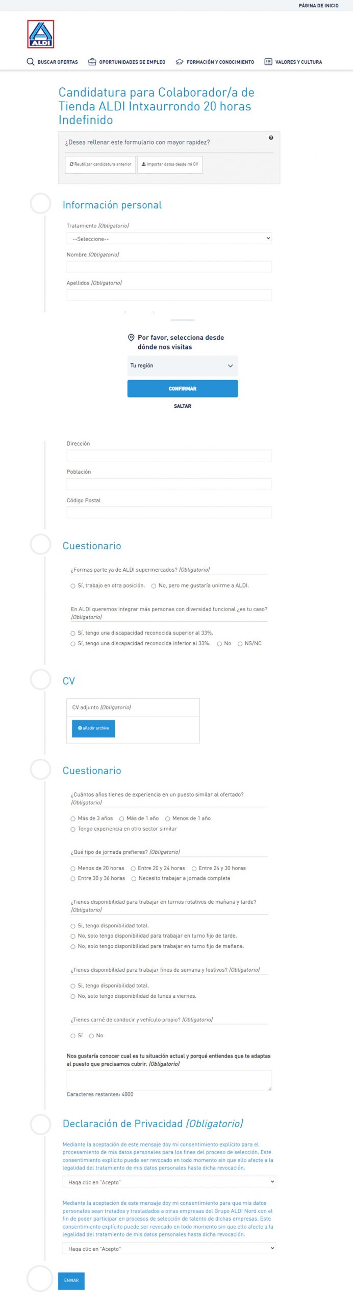 Si quieres enviar el CV, puedes acceder a su portal de empleo de Aldi.