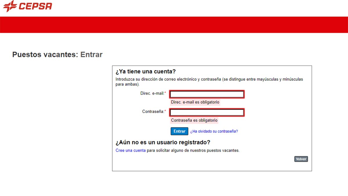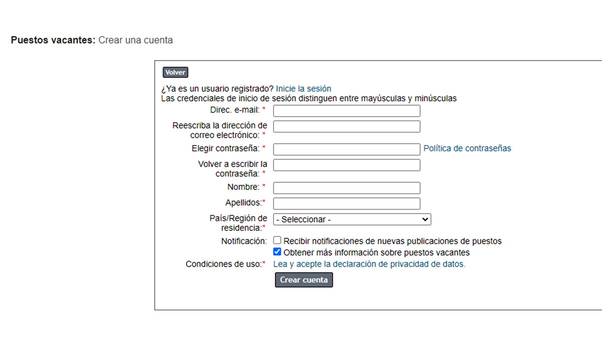 Si optas por la segunda, se abre una nueva pantalla que pregunta si tienes una cuenta creada para iniciar sesión y proceder con el registro. Si no la tienes, debes crearte una para apuntarte a la oferta.