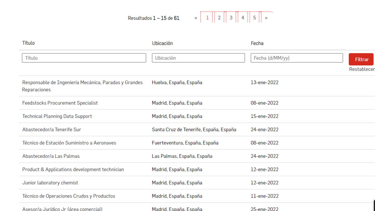 Cepsa ha publicado a principios de 2022 un total de 61 ofertas de empleo para trabajar en sus centros y estaciones de servicio en España. Las ofertas que la compañía tiene activas son muy variadas y se dirigen a distintos perfiles profesionales. Algunos de ellos son para cubrir puestos de técnicos de estación y de operaciones, supervisores de calidad y de tuberías, asesores legales, supervisores de electricidad y especialistas en análisis y desarrollo, entre otros.