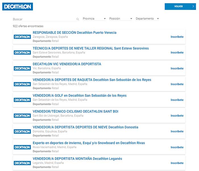Para enviar el currículum y poder optar a una de las ofertas de trabajo de Decathlon tienes que hacerlo a través de su portal de empleo. Desde el portal de trabajo de Decathlon se hace un llamamiento a toda personas apasionada del deporte para que forme parte de su plantilla puesto que se trata de una marca especializada en productos para todo tipo de deportes.