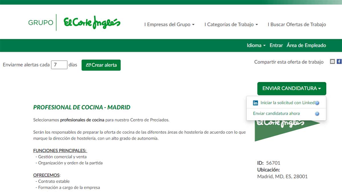 Para inscribirte en cualquiera de las ofertas del grupo tienes que seleccionar el botón verde que aparece en la parte derecha de la página que dice ‘Enviar candidatura‘.