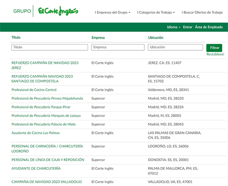 En el portal de empleo de la compañía puedes filtrar las ofertas para buscar la que más se ajuste a tus necesidades en función de dos parámetros: