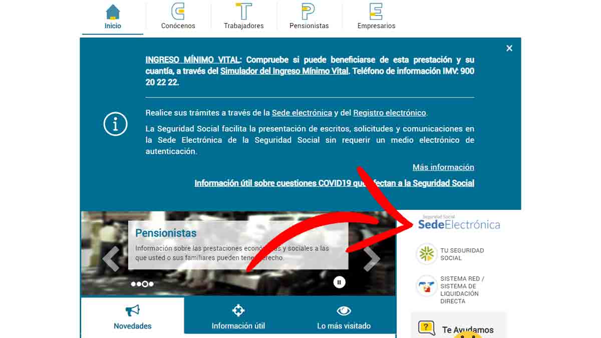 Acceder a la página oficial de la Seguridad Social a través de este enlace y acceder a la sede electrónica.