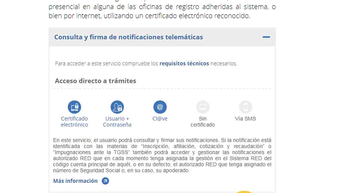 Por motivos de seguridad tan solamente se puede acceder a las notificaciones de la Seguridad Social a través de algún tipo de identificación digital.