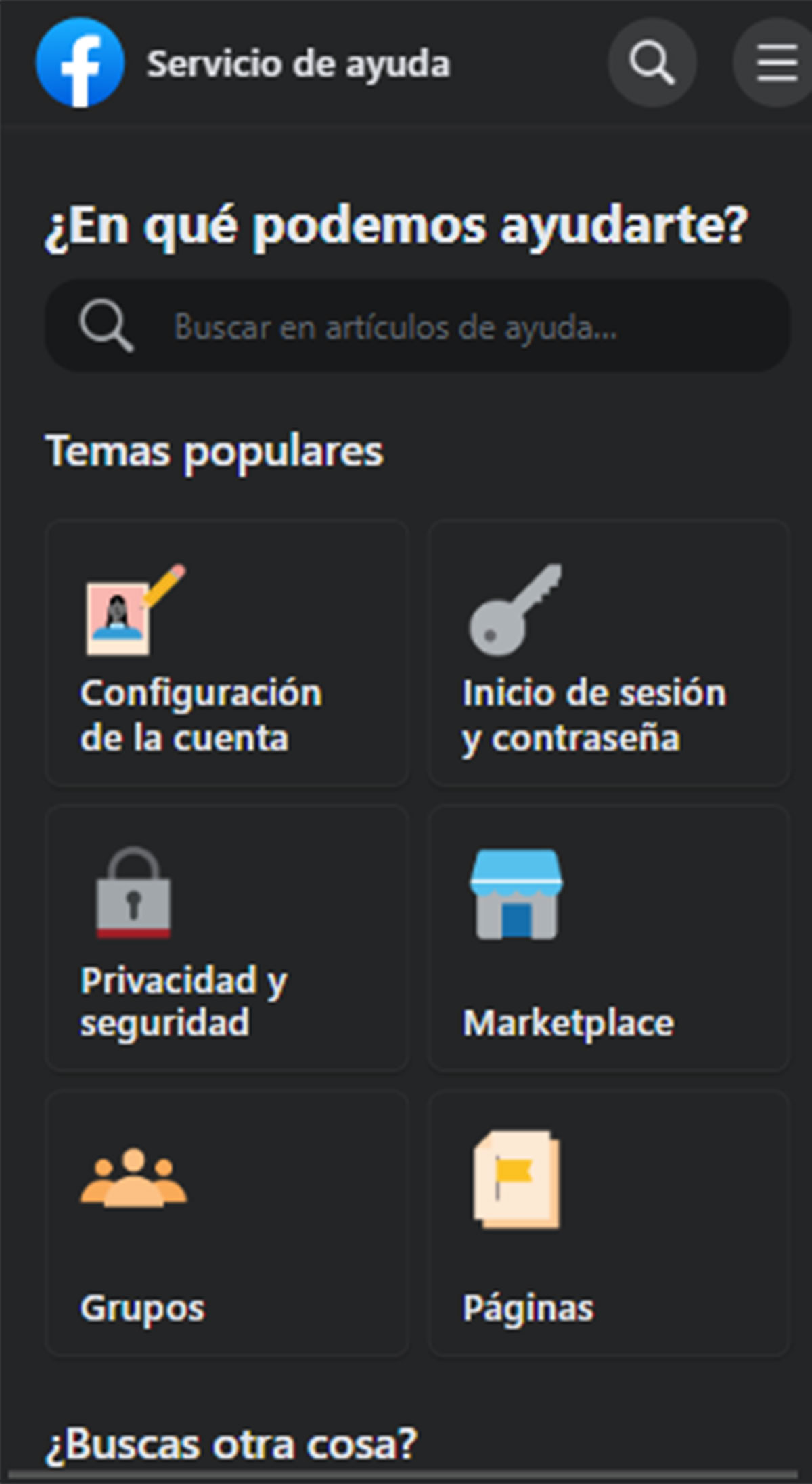 Es una herramienta al alcance de todos los usuarios con cuenta de Facebook donde es posible responder a las cuestiones más habituales de problemas de cuenta, privacidad, de inicio de sesión y contraseña y hasta de cuestiones relacionadas con el marketplace, grupos y páginas.