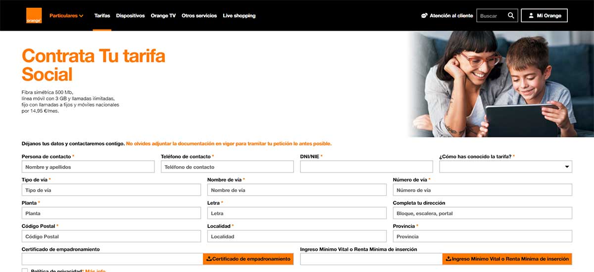 Aunque a diferencia del modelo de contratación de otras tarifas sociales de teléfono, en este caso, es Orange quien tras enviar el formulario, se pone en contacto con los clientes interesados en la tarifa para proporcionarles todos los detalles. Puedes enviar el formulario de solicitud para contratar la tarifa social de Orange desde la web de la tarifa social de Orange.