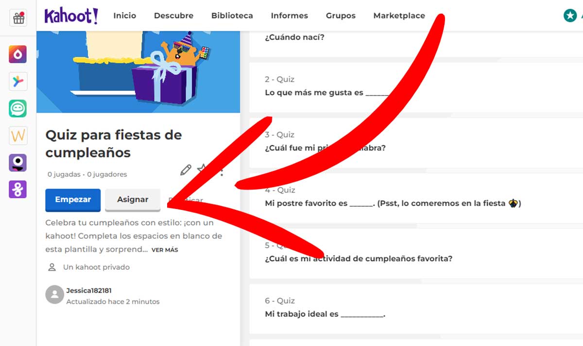 Para terminar, hay que darle a ‘Guardar’. Y, por último, desde la pantalla de inicio seleccionar el Kahoot que acabas de diseñar y, a continuación, el botón ‘Asignar’ para invitar a tus amigos y echar una partida.