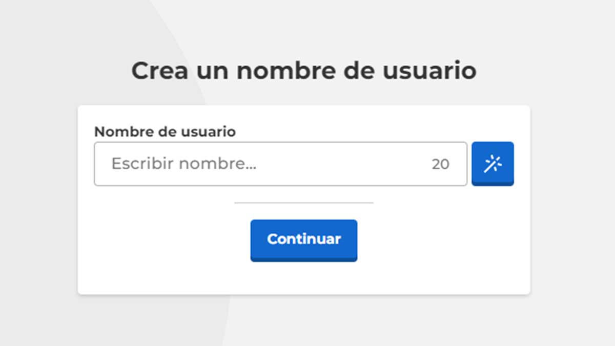 Elegir un nombre de usuario que debe ser de máximo 20 caracteres, tal y como aparece detallado en la web.