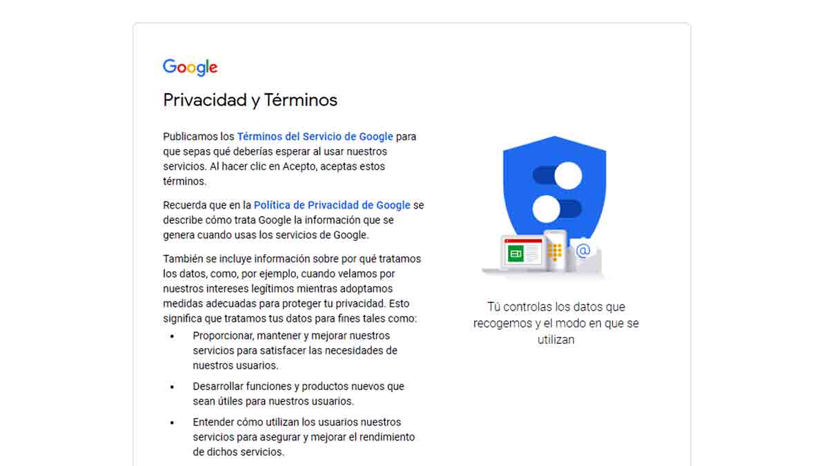 Para finalizar el proceso, en el cuarto y último paso de creación de la cuenta con éxito, tienes que aceptar la Política de privacidad. Una vez hecho esto, tendrás acceso a tu página principal y podrás empezar a utilizar todos los servicios del buscador.
