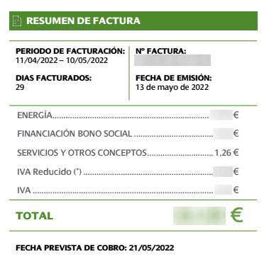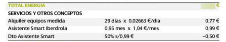 Para saber si Iberdrola te está cobrando el Asistente Smart, tienes que coger la última factura que tengas de la compañía. En el resumen de la factura hay un concepto que es ‘Servicios y otros conceptos’. Tienes que fijarte en ese apartado. Aquí te dejamos un ejemplo de cómo es en tu factura.