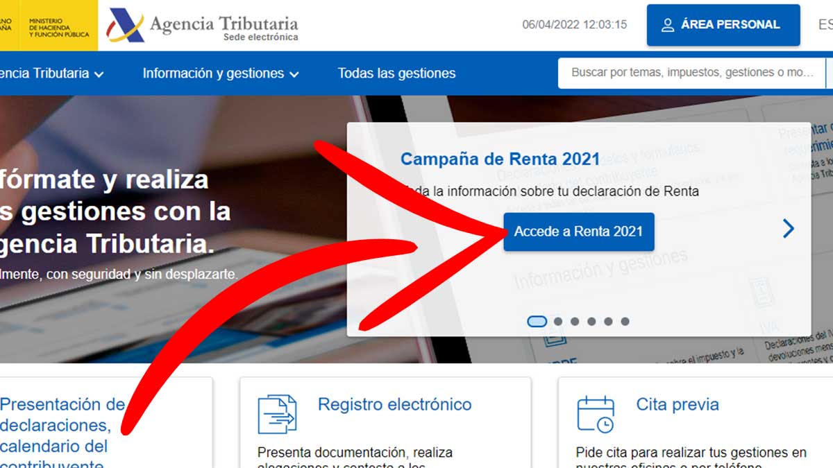 La Agencia Tributaria pone a disposición de los ciudadanos diferentes formas para poder descargar el borrador y presentar la declaración. En cualquiera de las opciones habilitadas, para acceder hay que ir a la página oficial de la Agencia Tributaria y seleccionar la pestaña ‘Accede a la Campaña’.