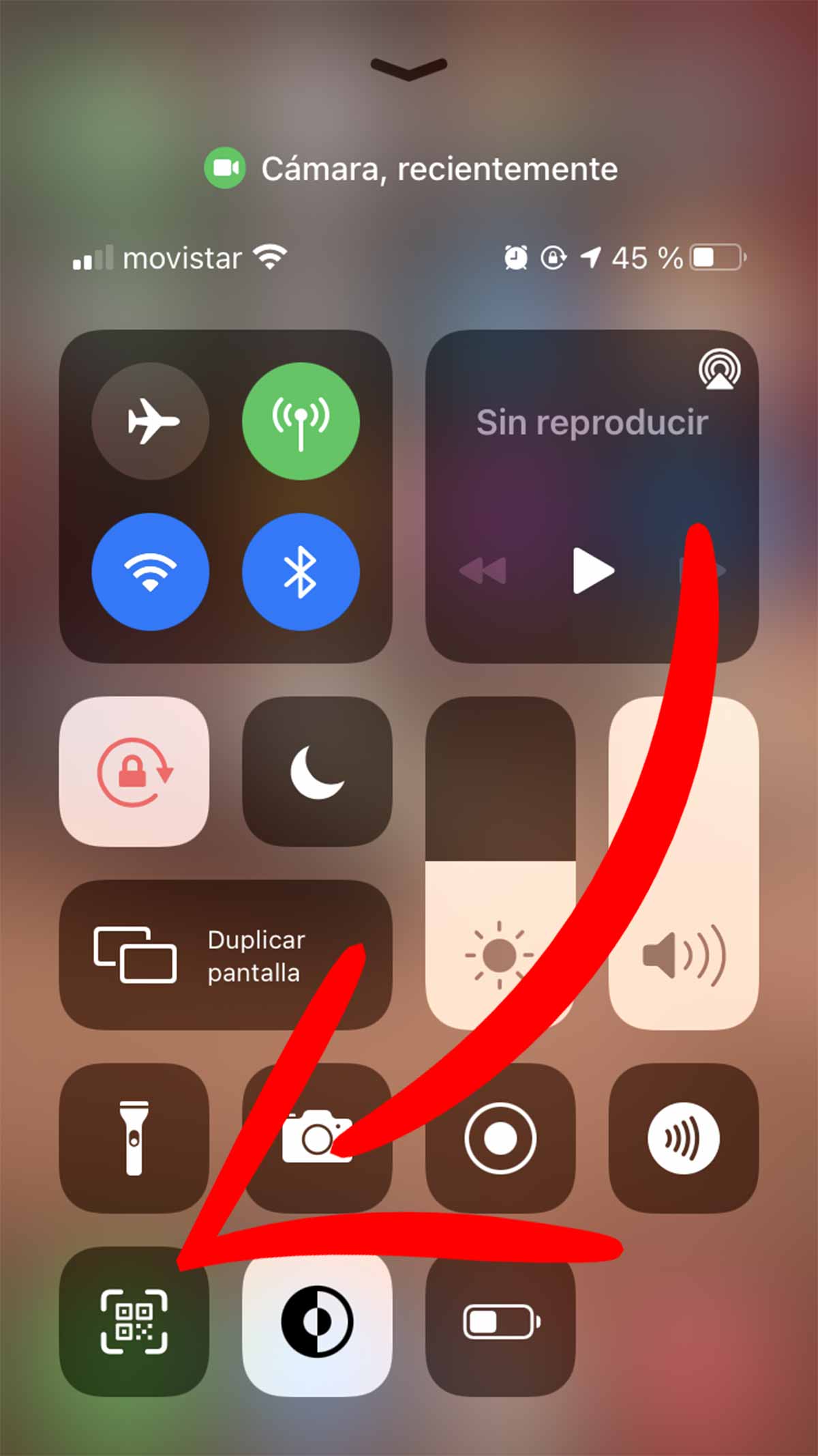 Si decides hacerlo con la cámara del teléfono, solamente tienes que abrir la aplicación de la cámara y colocar el teléfono encima del código QR que quieres leer. En la pantalla aparecerán dos líneas que te indican en qué punto debes colocar el código para que el teléfono pueda leerlo.
