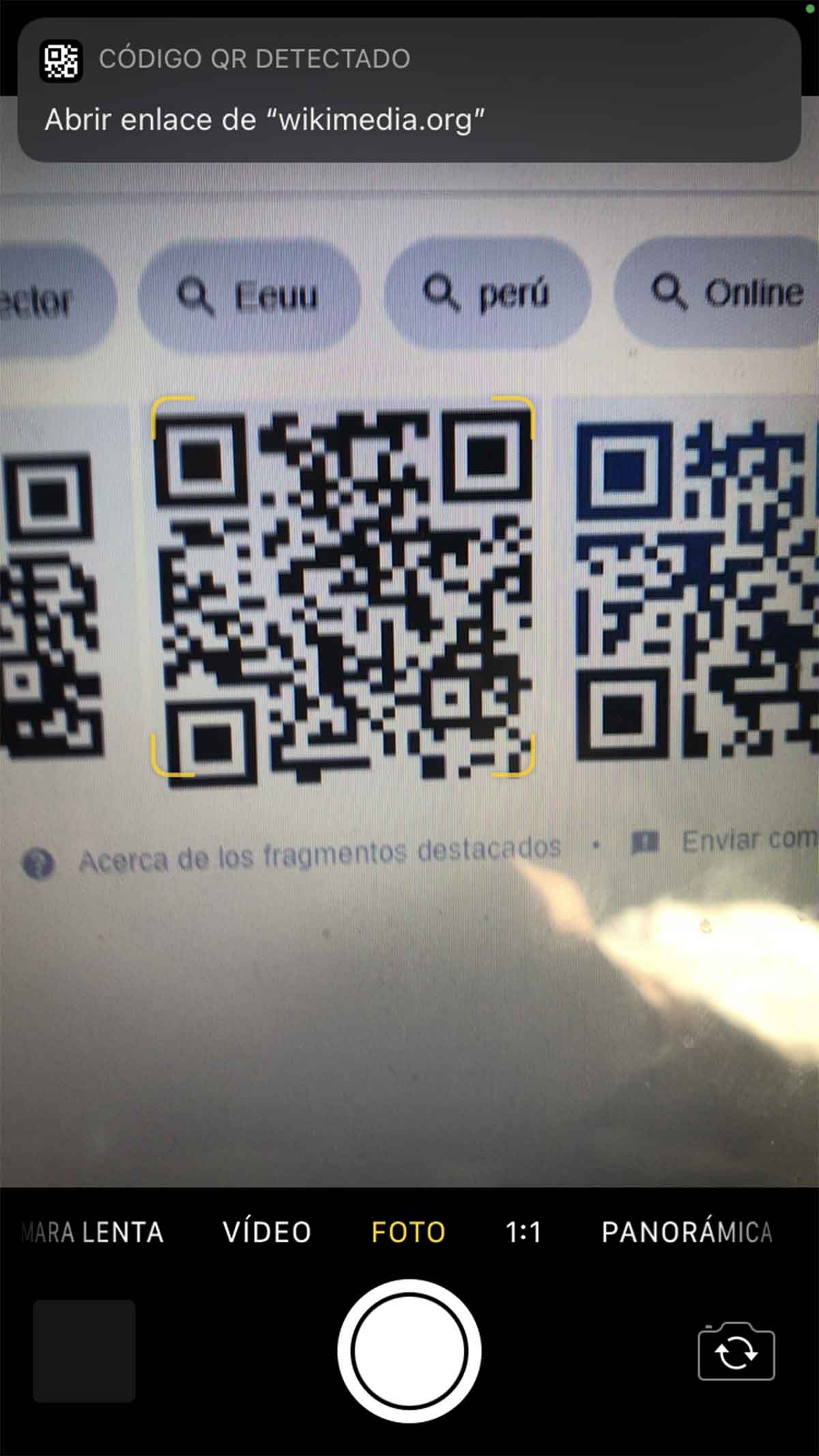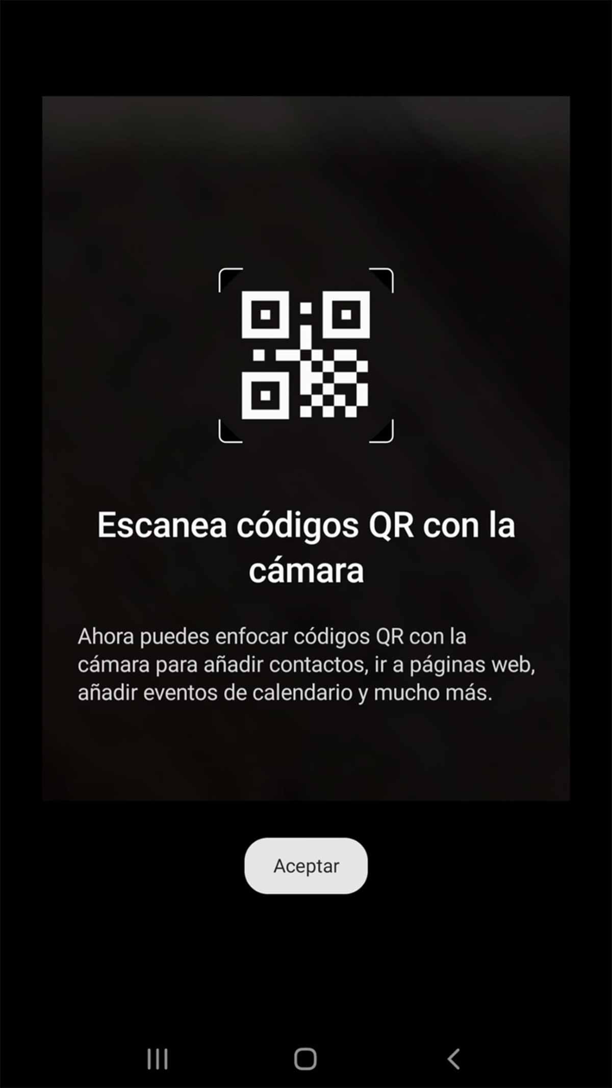 Después tienes que seleccionar el botón ‘Aceptar’ y se abre la cámara de fotos automáticamente. Ahora solamente debes enfocar a un código QR para que lo escanee y, cuando aparezca un mensaje en la parte inferior de la página con una dirección de página web para acceder, tienes que pulsarlo y abrirla.