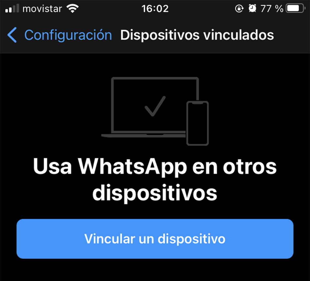 Para escanear este código hay que abrir la aplicación de WhatsApp en el teléfono y buscar la pestaña ajustes o configuración. Después, acceder a la pestaña ‘dispositivos vinculados’ y pulsar en ‘vincular un dispositivo’.