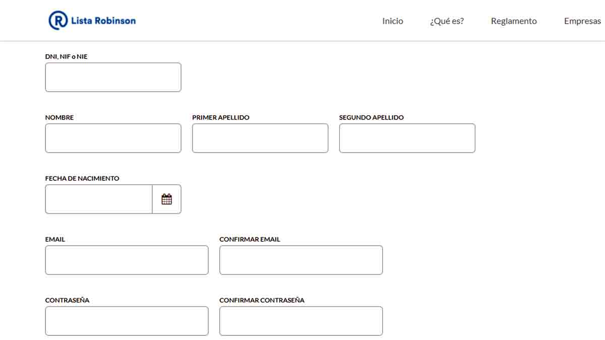 Tras rellenar el formulario, recibes un correo electrónico en el que se adjunta un enlace al que hay que acceder para verificar el registro. Una vez lo has verificado, introduces los medios en los que no quieres recibir más publicidad. Los medios que puedes seleccionar son: