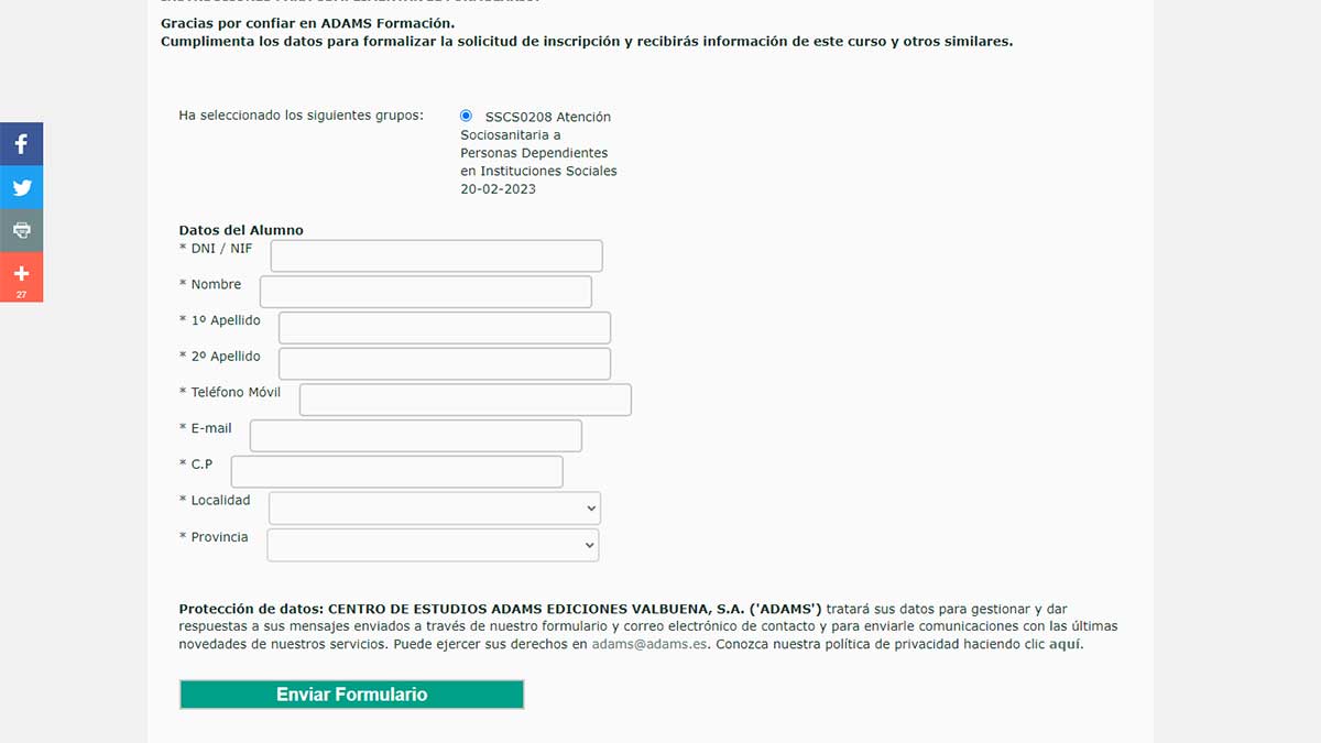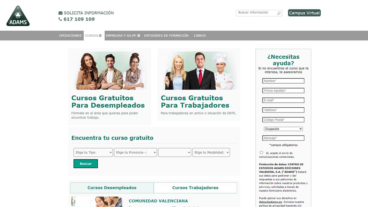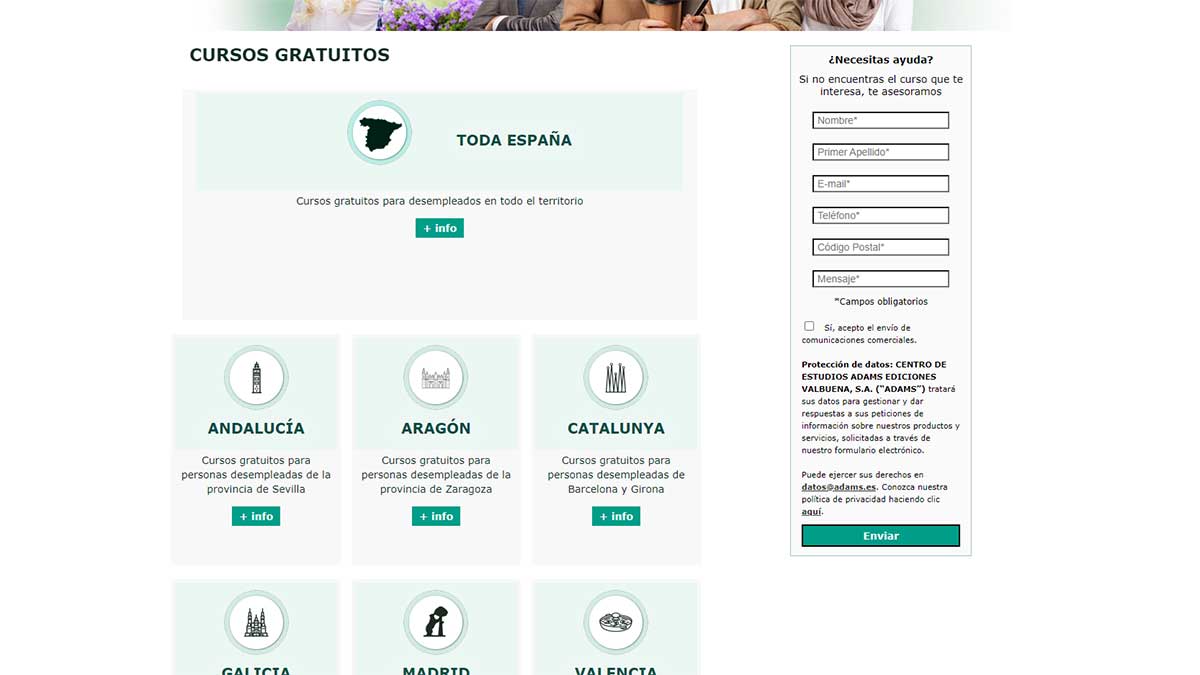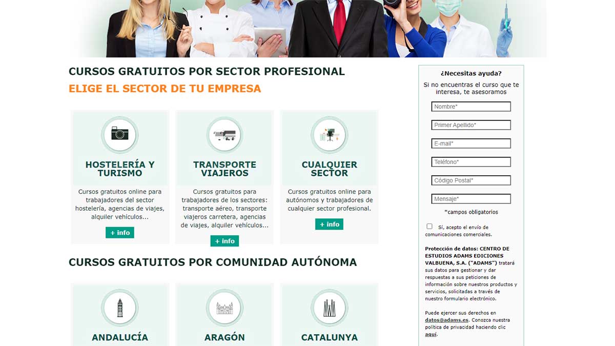 Puedes acceder al catálogo de cursos para inscribirte y comenzar tu formación desde la web de Adams.
