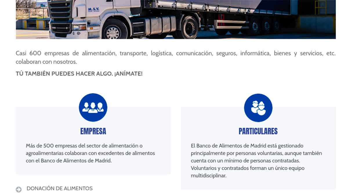 El proceso de inscripción para hacer un voluntariado es rápido y sencillo. Lo primero que tienes que hacer es acceder a la web del Banco de alimentos de tu localidad. Vamos a ver el ejemplo para ser voluntario en Madrid. Después, tienes que acceder a la pestaña que se encuentra en la parte superior del menú que dice ‘Colabora’, tal y como ves en la imagen.