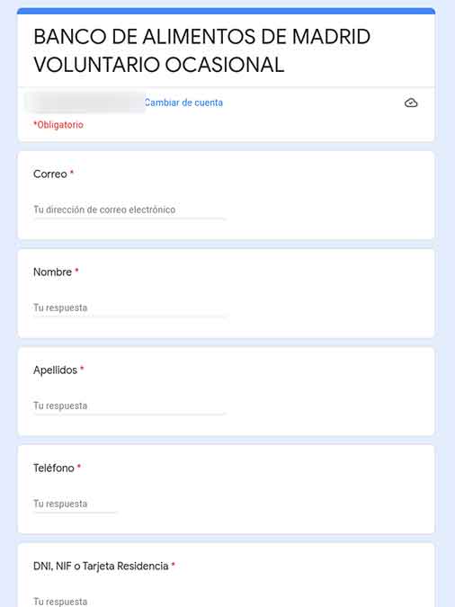 Para este ejemplo vamos a seleccionar voluntario ocasional. Al seleccionar esta opción se abre una nueva página en la que aparece un formulario que hay que completar con los datos personales, identificativos y de contacto.