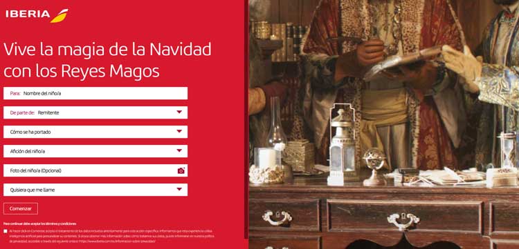 Esta opción no es desde una aplicación móvil como tal, sino desde la web de la aerolínea de Iberia. Es totalmente gratuita y solo tienes que entrar en su página web desde un móvil, ordenador o tablet y rellenar los datos relacionados con el nombre del niño, qué tal se ha portado este año, de parte de quién va el saludo, el regalo que desea, los gustos del niño y, de una manera opcional, una foto de tu hijo.