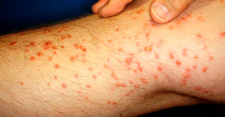 Son las más frecuentes. Dejan una ampolla o habón rojo, con picazón intensa pero localizada. Suelen aparecer en zonas expuestas como brazos y piernas. Las picaduras múltiples son habituales en verano.