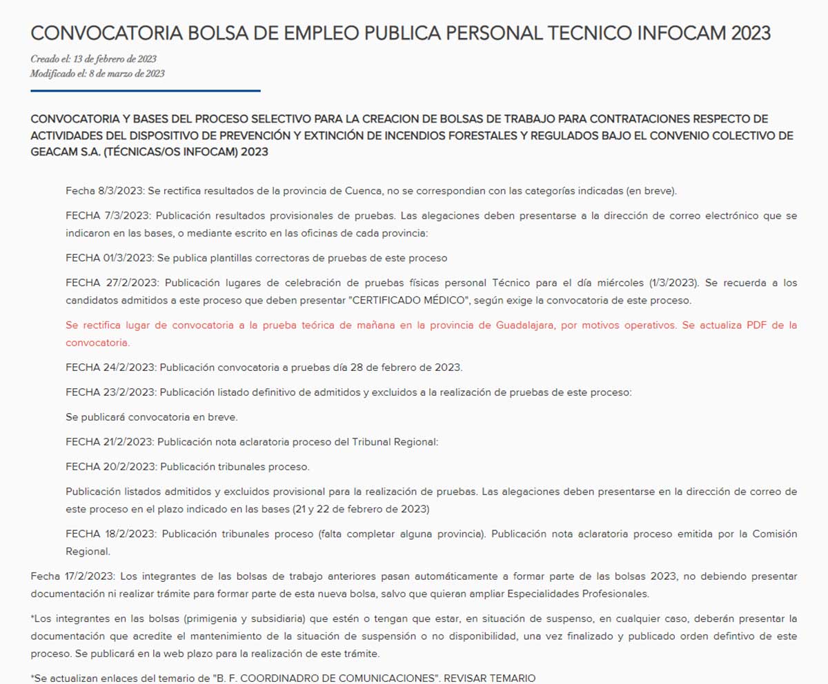 - Convocatoria pública en bolsa de trabajo de Infocam en puestos no técnicos