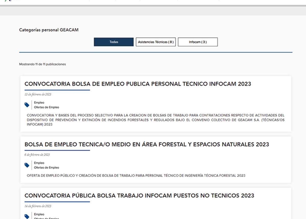 La oferta disponible de puestos de trabajo en GEACAM se centra en puestos de trabajo relacionados con el medioambiente y la naturaleza. En concreto, las convocatorias vigentes en el portal en la actualidad son las siguientes: