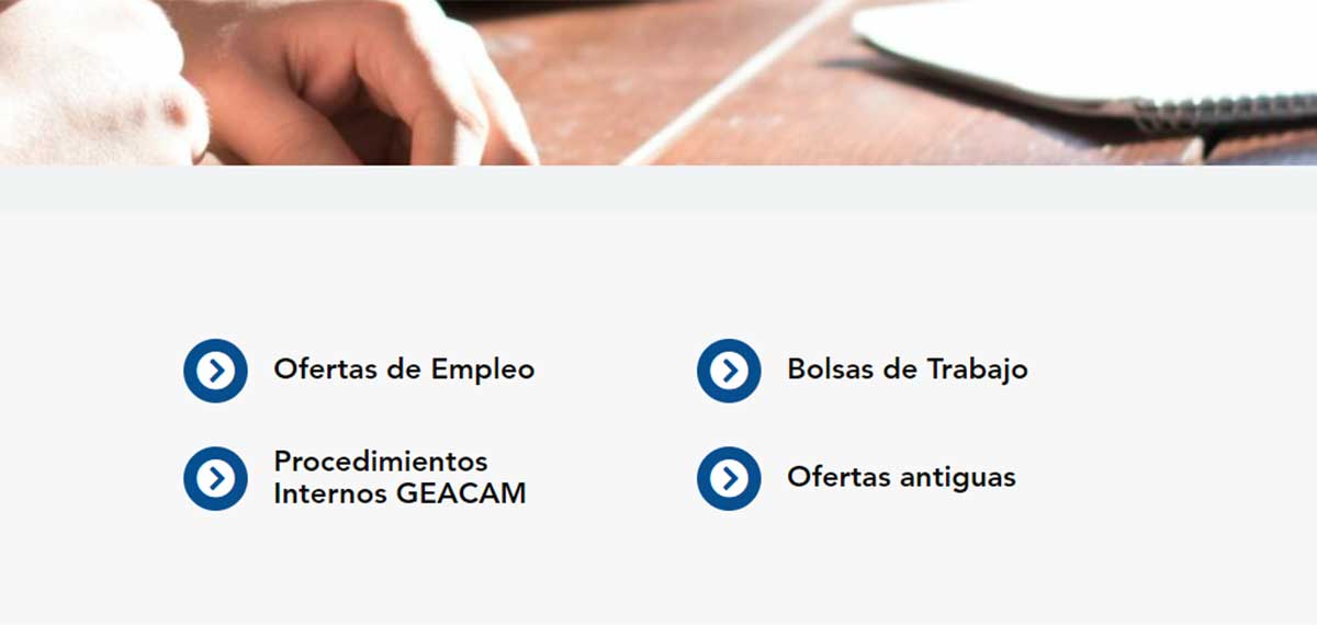 Si alguna de estas vacantes te interesa, en los siguientes apartados te explicamos cómo localizar una oferta de trabajo en GEACAM, así como el proceso para inscribirse en alguna de las ofertas disponibles.